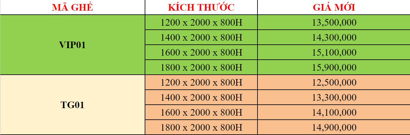 Bảng giá mã ghế sofa giường gấp TG01 và TG03