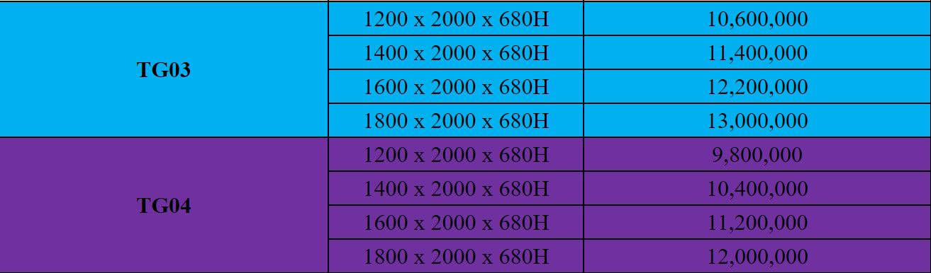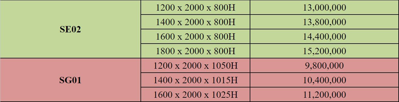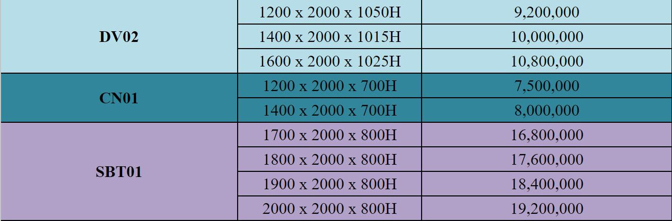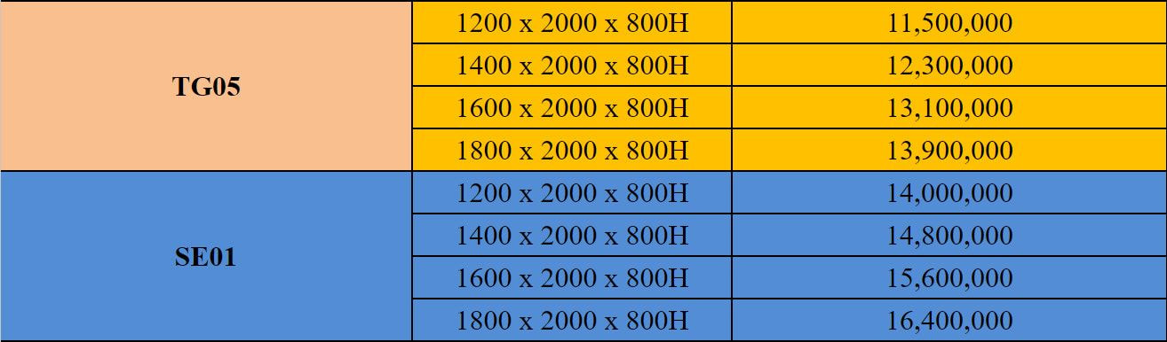 Sau khi lựa chọn được sản phẩm mà mình thích, bạn hãy xem giá bán của nó theo các kích thước bằng các bảng giá dưới đây: