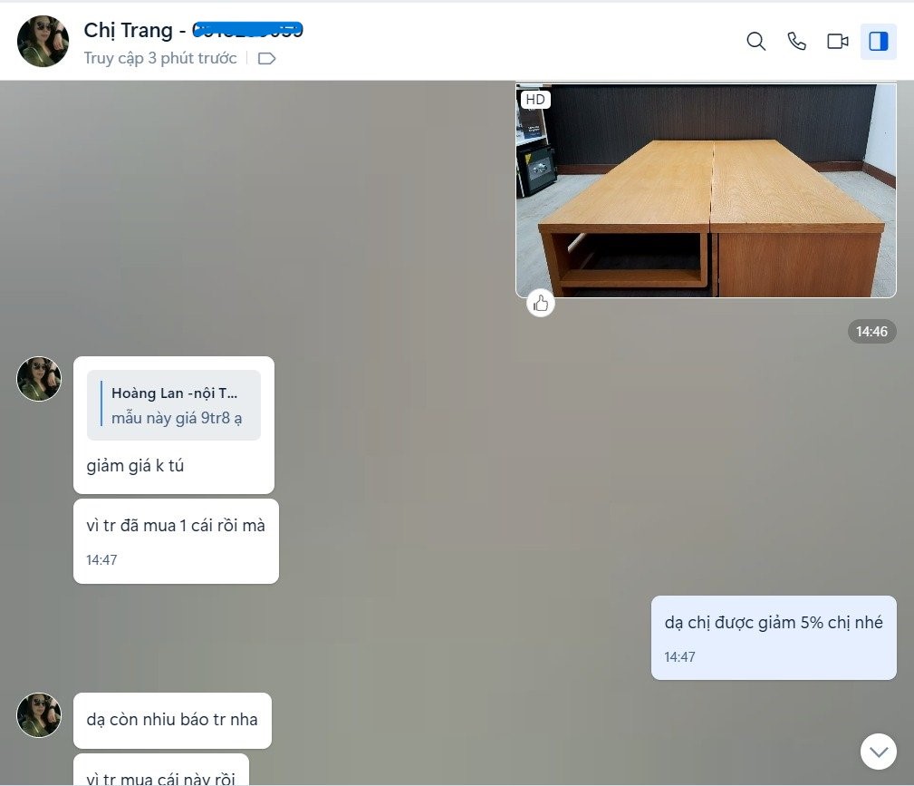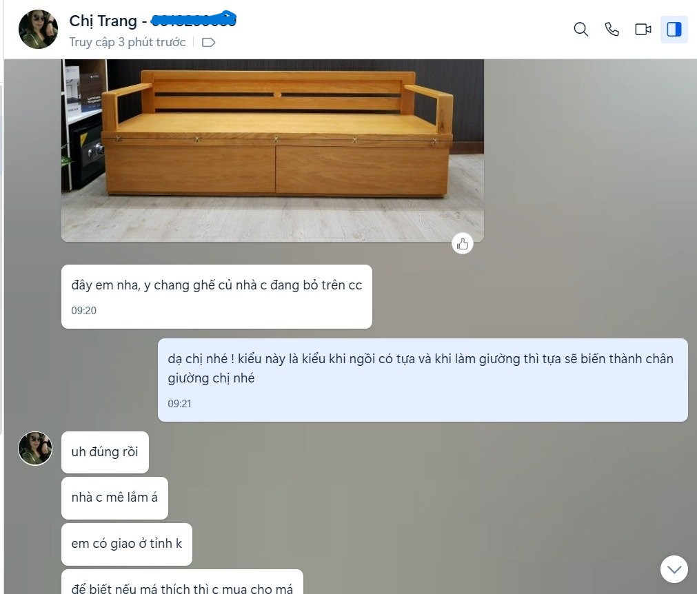 Chị Trang liên hệ với Mạnh Hệ từ năm 2021 đến xưởng xem hàng và đặt hàng trực tiếp tại xưởng đó là mẫu sofa giường gấp mã TG04 ,qua thời gian sofa giường Mạnh Hệ chị sử dụng rất ok gia đình chị rất mê ,mẹ chị từ quê lên thăm rất thích kiểu sofa giường này và có nhờ con gái hỏi thăm xem nếu MH có giao về tỉnh sẽ đặt thêm một cái