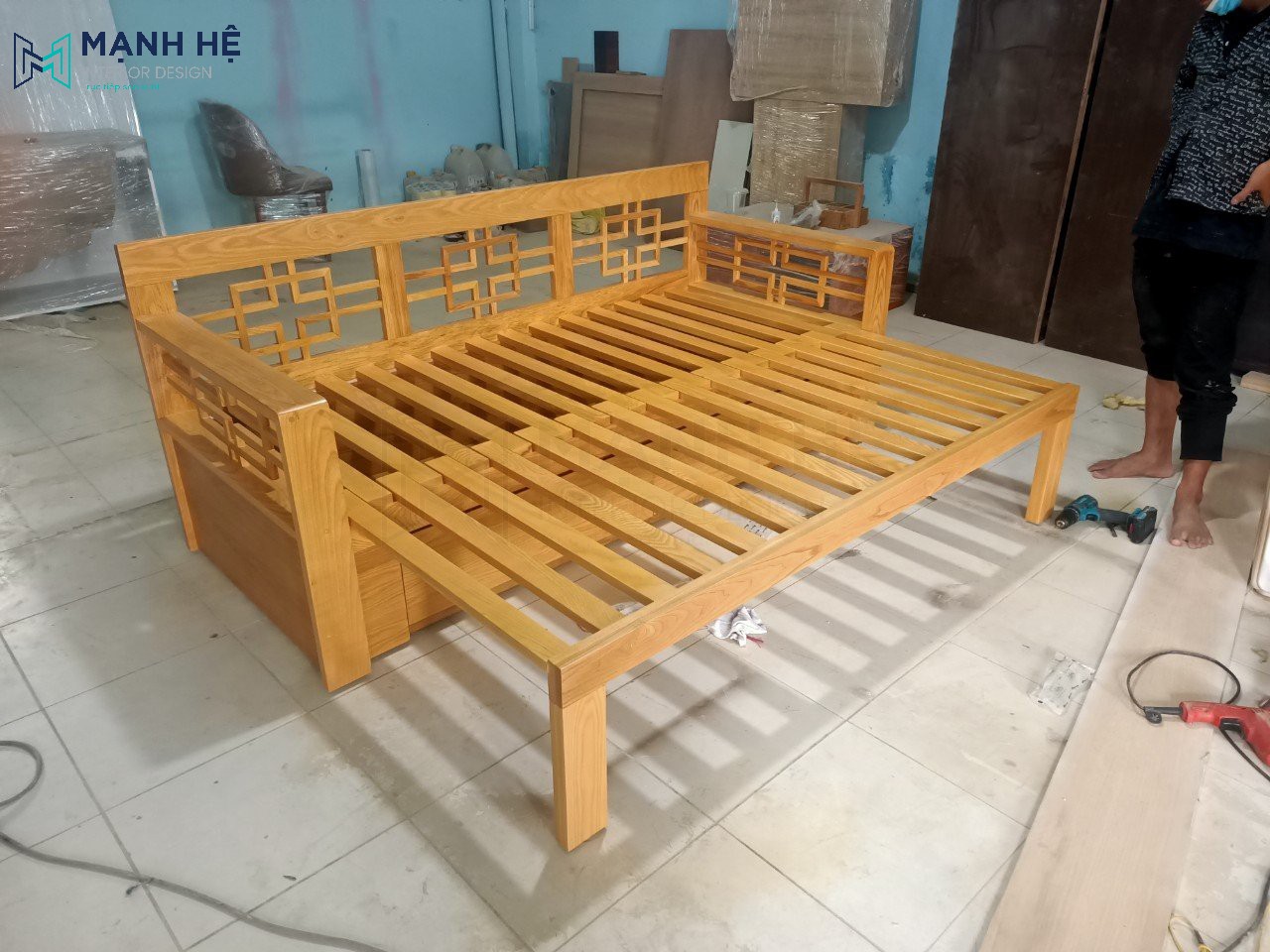 Ghế sofa giường gỗ mã TG01 làm bằng gỗ tự nhiên sang trọng