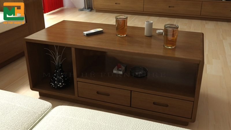 Ngăn kéo sẽ giúp bạn đựng được kha khá đồ tuy nhiên 1 bàn trà chỉ nên làm 1 ngăn kéo để tạo độ thoáng cho bàn trà