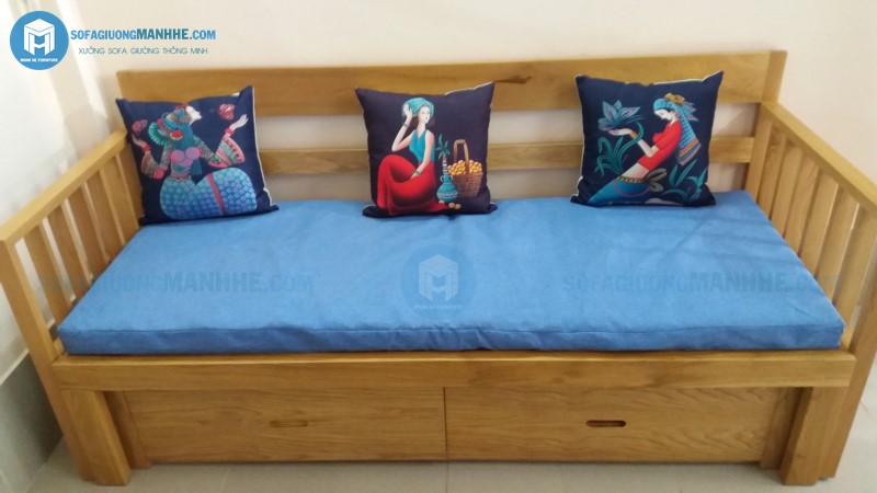 sofa giường kéo màu gỗ sồi tự nhiên kích thước 1m2 x 2m